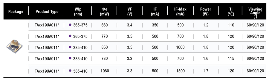 • 高光功率密度UV LED