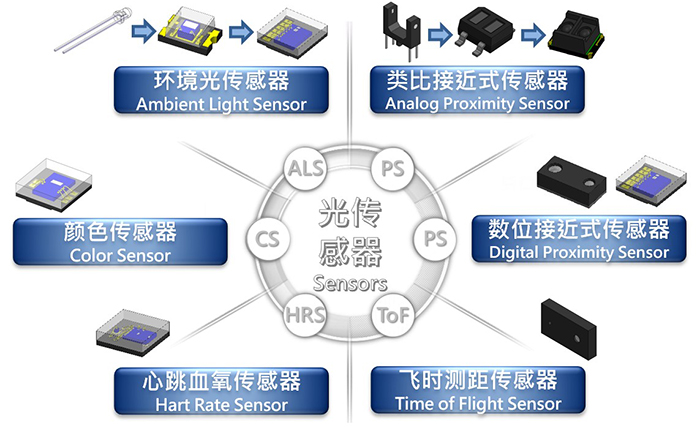 光傳感器位於上述應用的角色不外乎為感測環境光源的變化,進而調整產品自身發光的強度,