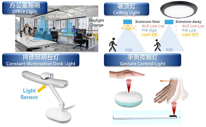 (2)環境光感測應用:帶顯示屏的產品如智能手機、平板、智能電視等,主要功能為感測環境光源的變化,並調整背光的強度;