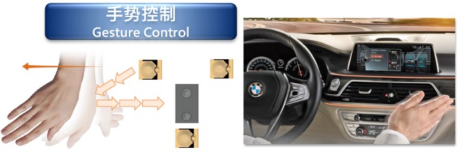 (1)環境光感測:可應用於車燈自動開關,進階功能為依環境光強度調整車燈亮度達到省電功能等;
