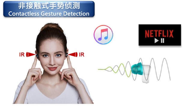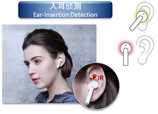 (1)入耳偵測:利用紅外感應將耳朵作為反射物進行藍芽開關的驅動;