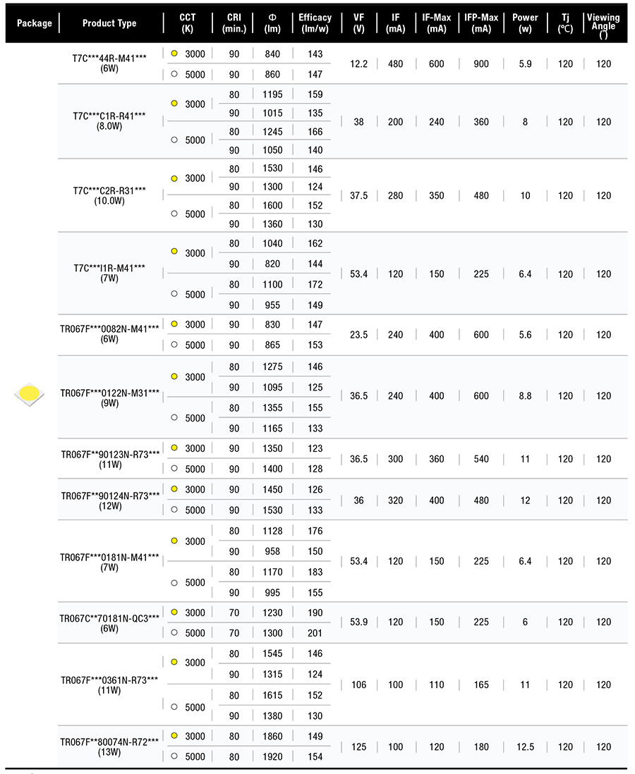 • 高可靠性EMC封装产品,完美平衡光效,可靠性,照明质量及综合成本优势