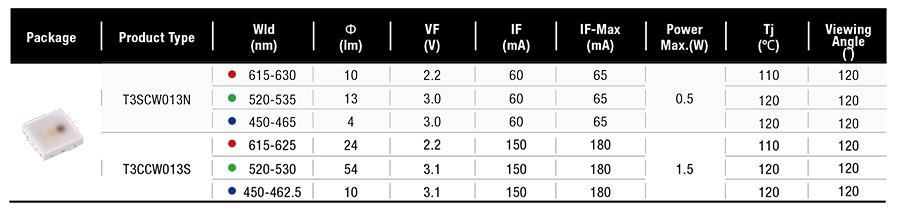 产品特性:• 高耐热EMC封装• 紧凑的封装尺寸规格• 低热阻• 耐高电流驱动