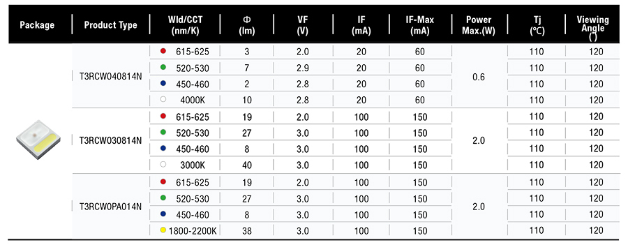 产品特性:• 高耐热EMC封装• 紧凑的封装尺寸规格• 低热阻• 耐高电流驱动
