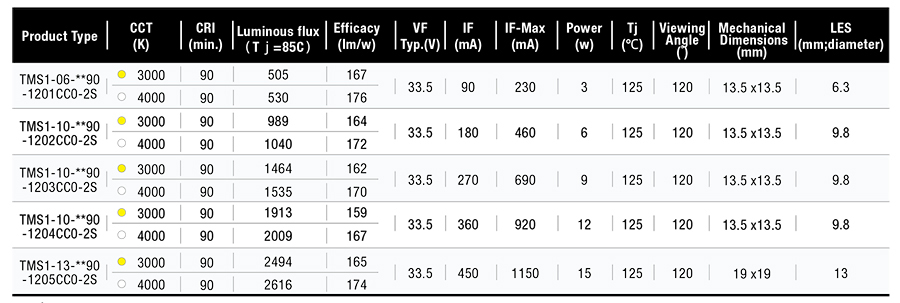 • 极小发光面,可提供极高单位面积光密度